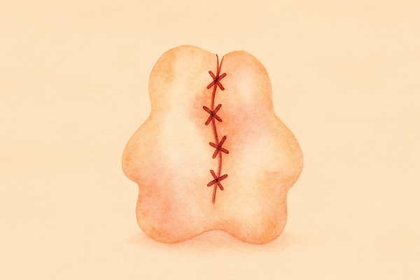 봉합은 풍부한 치료 경험이 필요하며 어떤 재료를 사용하느냐에 따라 흉터에 차이가 있을 수 있습니다.